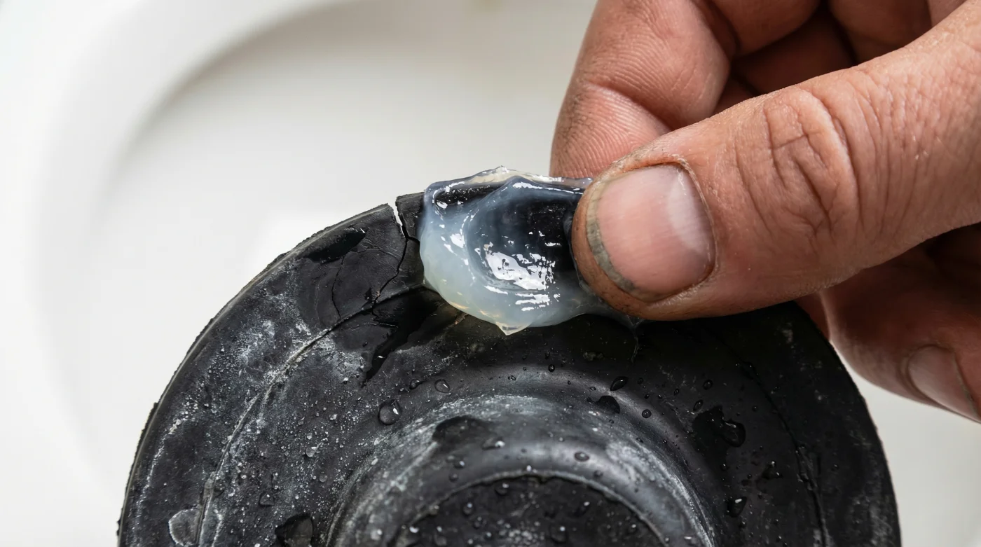If you live in an area with heavily chlorinated city water, the rubber often turns chalky. In these setups, the material gets brittle around the edges first. You will notice a white residue clinging to the underside of the flapper. You might feel a slight grit when you run your thumb across the rim. This chalkiness is the rubber oxidizing. The jelly will act as a deep conditioner, penetrating those micro-cracks.